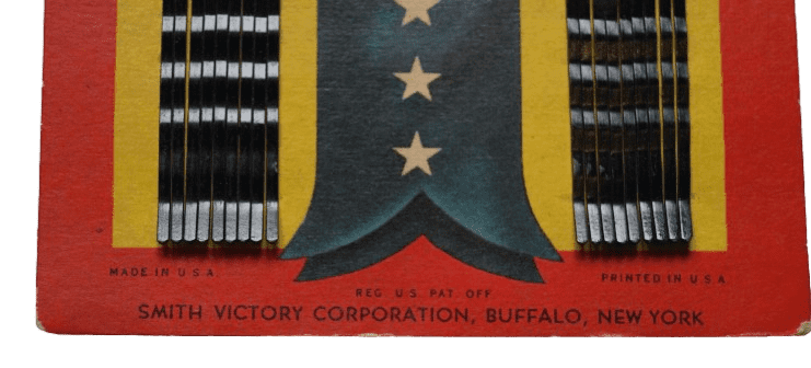 Épingles à cheveux Victory "Bobbie Pins" originales de la seconde guerre mondiale, fabriquées par Smith Victory Corporation et utilisées par le personnel féminin. Le présentoir carton aux couleurs patriotiques américaines contient 15 épingles à cheveux en métal noir. En bon état, des usures et une petite déchirure. Dimensions 12,2 x 9 cm.