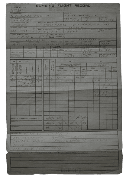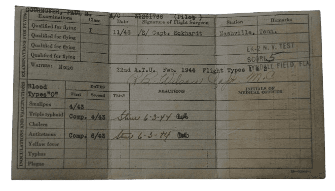 - Sa carte USAAF Pilot and Crew Member Physical Record complétée en 1943