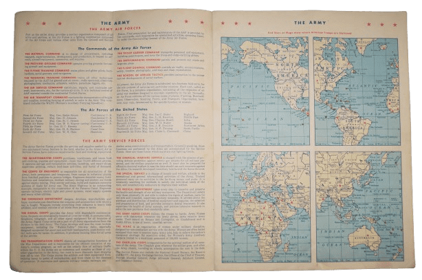 Guide de reconnaissance Our Fighting Forces original de la seconde guerre mondiale édité en 1943 par la célèbre marque de cacahuètes Planters Peanuts. Ce livret de 16 pages permet de reconnaitre les insignes, uniformes et véhicules de l'US Army, Navy et Marines, ainsi que les uniformes et insignes des armées allemandes, japonaises et italiennes. En bon état général, la couverture comporte des usures et tâches, une pliure au centre. Dimensions : 33 x 25,5 cm.