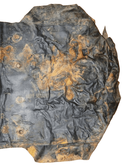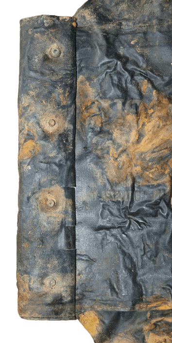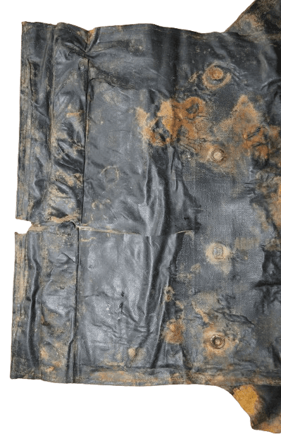 Véritable pièce de terrain en l'état, vide, sans sangles ni boucles, comportant des défauts et déchirures (voir photos).