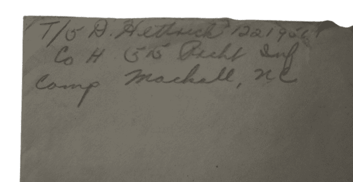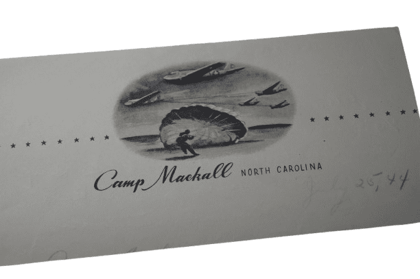 LETTRE T/5 DAVID HETTRICK 13TH AIRBORNE CAMP MACKALL 1944
