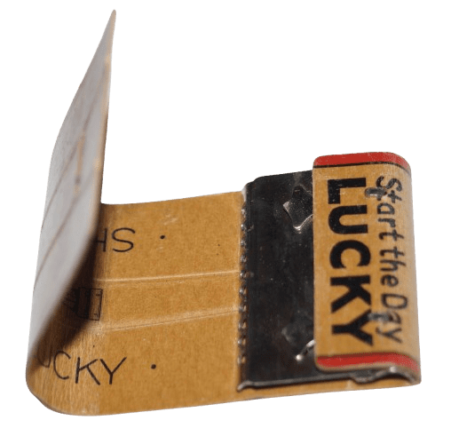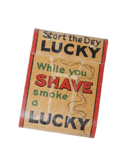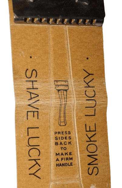 Rasoir Lucky Strike original, breveté le 6 Septembre 1932, modèle rare, pliable en forme de pochette d'allumettes fabriqué par "The Shaver Corporation Greenwich, Conn." Le carton se plie pour former le rasoir, le bout est en métal et comporte une lame. En bon état, quelques usures, le carton vu son âge ne peut se plier pour former le rasoir. Dimensions fermé 5,5 x 4 cm.
